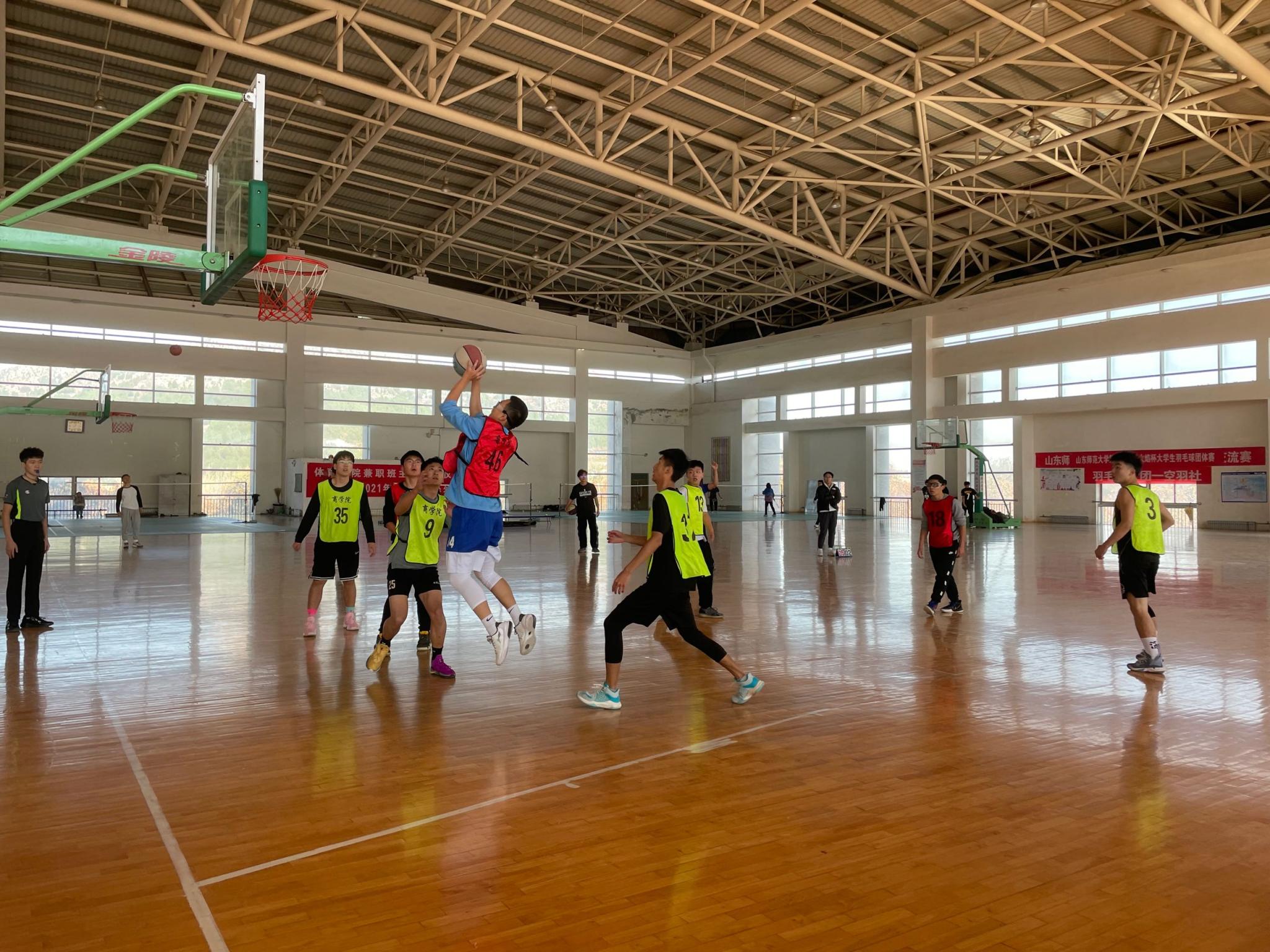 为提高商学院学生的积极性和凝聚力,培养学生积极向上的体育精神,基于“友谊第一,比赛第二”的原则,11月11日,商学院于长清湖校区体育馆举办男子篮球决赛和季军赛。经过了两个月的激烈角逐,一共有四支队伍脱颖而出,100余名学生到场加油助威,展现了当代大学生积极进取的精神风貌。