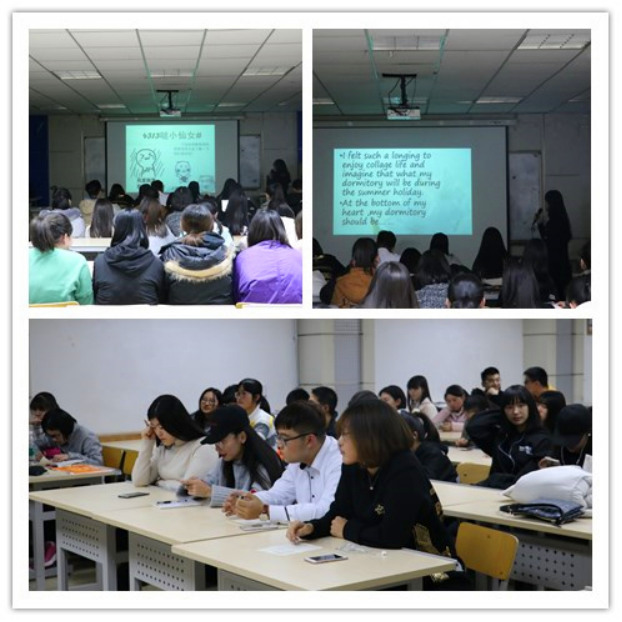 徽、舍名及其涵义进行了介绍并讲述了大学宿舍生活的趣事。同学们通过图片对宿舍风采进行了展示并通过PPT、视频等方式展示了宿舍