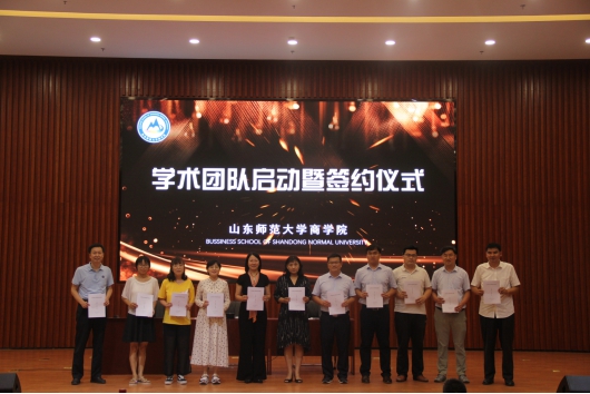 8月28日上午,商学院首批学术团队启动暨签约仪式在长清湖校区文昌楼报告厅举行,学院领导班子和9支学术团队负责人出席了活动仪式。