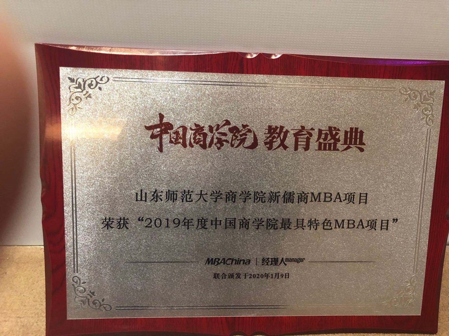 中国商学院教育盛典日前在北京盘古七星酒店举办。2019年度“中国商学院最具特色MBA项目”排行榜发布。山东师范大学商学院新儒商MBA项目荣获“2019年度中国商学院最具特色MBA项目”。杨继华、徐伟钟两位校友荣获“2019年度中国商学院杰出校友奖”。