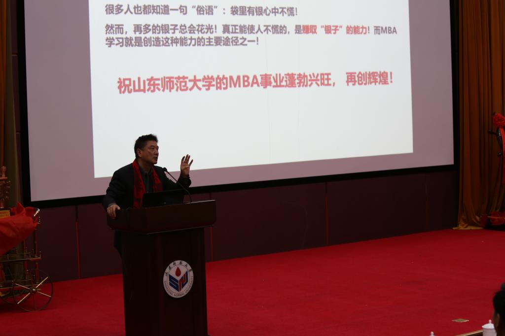 在上午的开幕式上,山东师范大学副校长王传奎介绍了学校基本情况,回顾了山东师范大学MBA的发展历程,介绍了十年来我校MBA取得的成果,并对山师MBA今后的发展提出了要求。商学院院长、MBA教育中心主任夏同水教授介绍了商学院和MBA的基本情况、近期工作及未来发展设想。