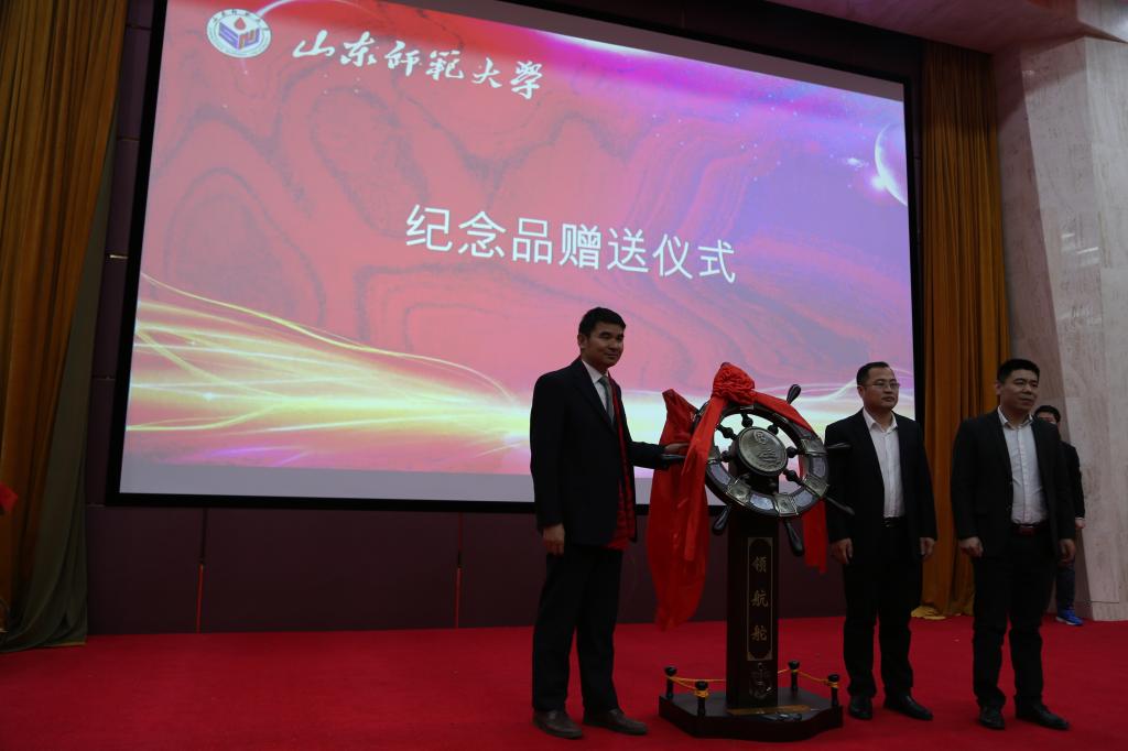 在MBA兼职导师聘任仪式上,山东师范大学副校长王传奎分别为李东教授、王性玉教授、王帅先生颁发了证书。山东师范大学对外合作发展办公室主任赵湘轶宣读了MBA校友会成立文件,并与山东省文化与旅游厅张明池副厅长一起为MBA校友会成立揭牌。北京泰山饭店总经理韩峰代表校友发言。山东大学管理学院与MBA校友会分别向中心赠送了纪念品。