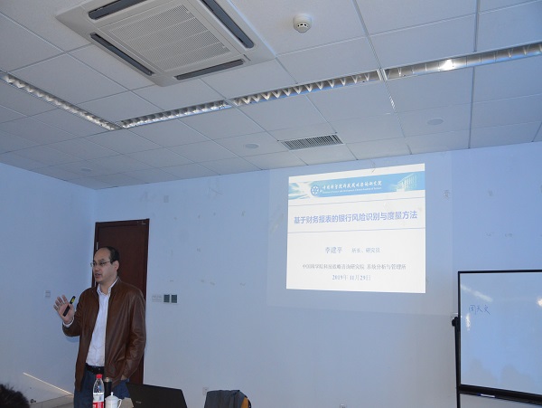 讲坛伊始,夏院长对李建平的到来表示热烈的欢迎,随即向参会人员简要介绍了李建平的研究内容。李建平是国家杰出青年基金获得者,现任中国科学院特聘研究员、博士生导师,中国科学院科技战略咨询研究院管理所所长、中国科学院大学岗位教授,《中国管理科学》执行主编。主要研究领域为:风险管理、大数据管理决策。