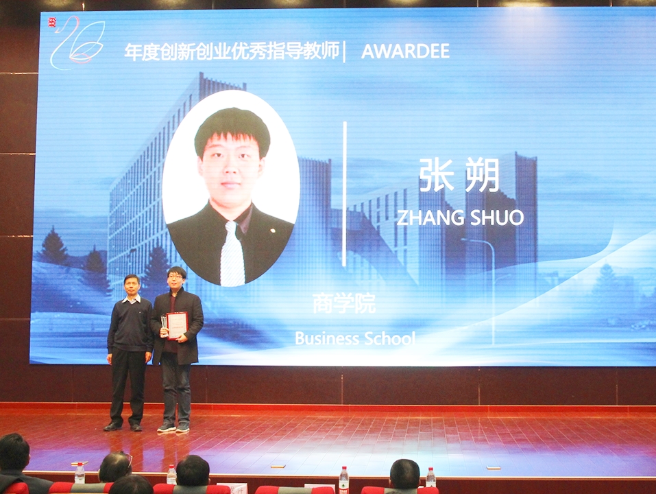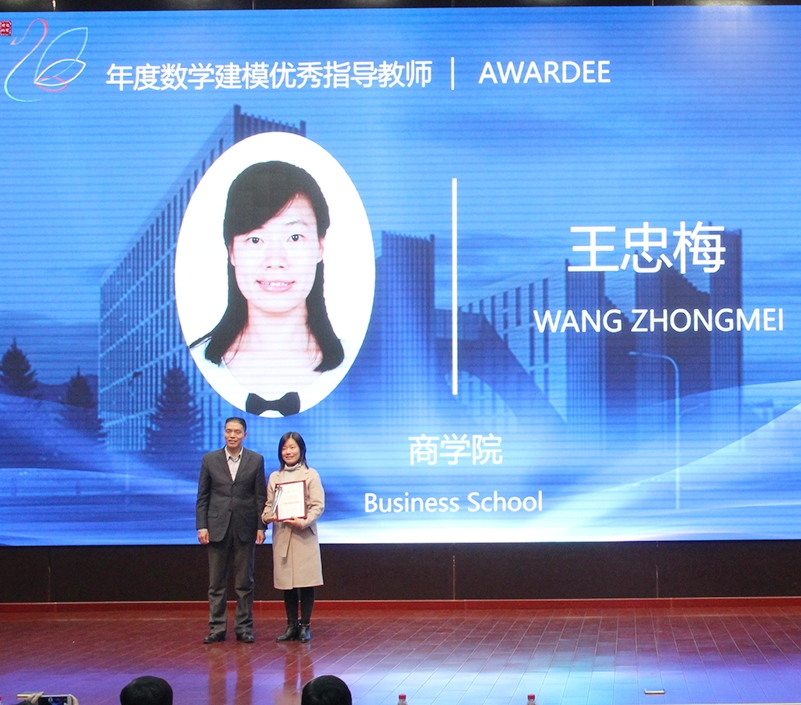 本次晚会共颁出三个集体奖项与十项个人奖项,在最受人瞩目的颁奖环节中,获奖的集体、个人在高昂的背景音乐中迈上领奖台。其中2015级物流管理3班、15号楼330宿舍、商学院田径队、厘米阳光支教团、商学院学生会体育部分获年度榜样班级、年度榜样宿舍、年度榜样团队等集体奖项。而在个人奖项中,王子然、金廷律、朱鸿昌、薛博文等十二位优秀学生脱颖而出,王忠梅、张朔老师分别被评为年度数学建模和创新创业优秀指导教师。颁奖结束后,学院同学带来了精彩的诗朗诵表演“厉害了我的国”。富有感染力的声音将我们引入诗歌意境,动人的词句完美地表达了纪念改革开放四十周年的诗歌内涵,节目充分展现商学院学生的良好精神面貌。