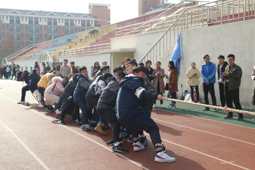 为增强同学们的团队意识,丰富课余生活,12月6日,商学院于长清湖校区风雨田径场举办新生拔河比赛决赛。2018级会计二班、中韩合作物流管理一班、电子商务一班、电子商务二班四个班级参与决赛的比拼,另有2018级百余名同学积极到场观赛。