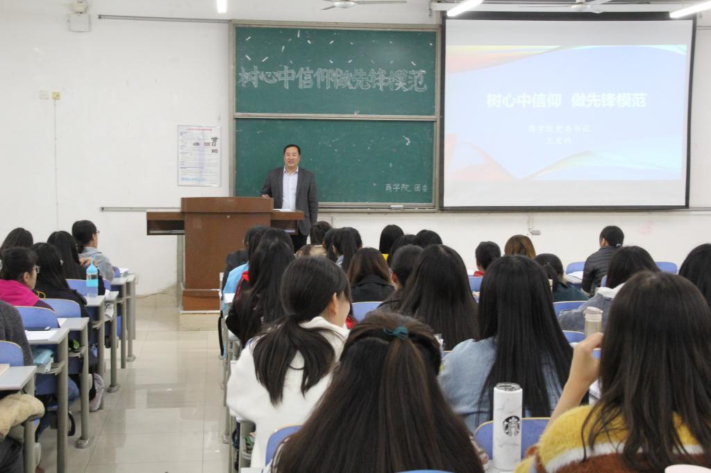 为提高入党积极分子的素质修养,11月1日,商学院于长清湖校区文渊楼C区335教室举办第57期“树立心中信仰,做先锋模范”党基班专题报告。本次报告会由商学院党委书记王发科担任主讲,2016级和2017级近150名入党积极分子踊跃参加,2017级辅导员付宝全主持本次讲座。