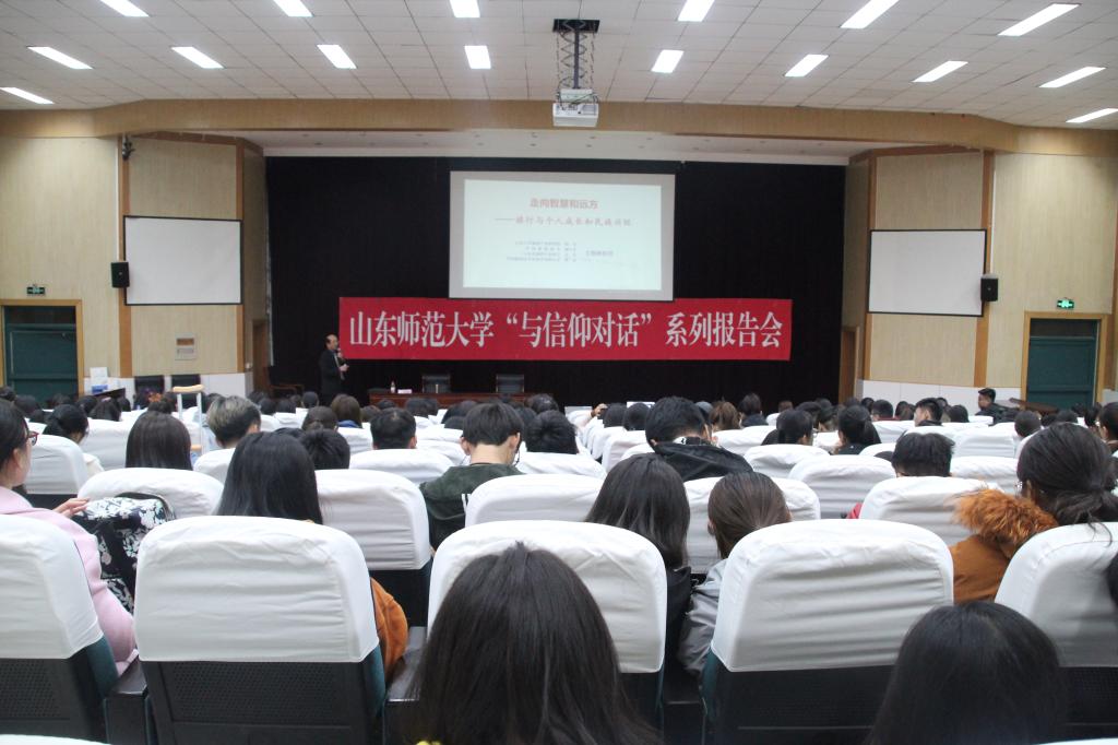 10月29日,商学院于长清湖校区第三报告厅举办“与信仰对话”之“走向智慧和远方——旅行与个人成长和民族兴旺”主题讲座,讲座由山东大学教授,中国旅游协会副会长,山东旅游协会会长,山东旅发委智库、中国教育部旅游管理教指委委员王德刚教授主讲,旅游管理系主任孙凤芝教授主持,校团委和商学院团委共同承办,商学院本科生、研究生共330人参加讲座。