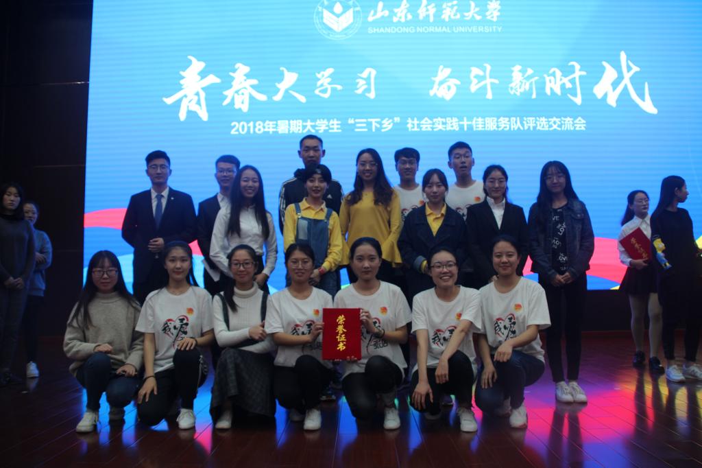 10月25日,山东师范大学于长清湖校区第一报告厅举行“青春大学习,逐梦新时代”2018年暑期大学生社会实践十佳服务队评选分享会。商学院共计两支社会实践服务团队参赛,并分别荣获十佳服务队、优秀服务队称号。