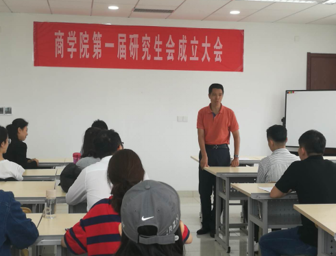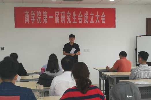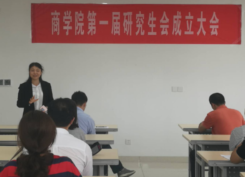 2018年9月18日上午,山东师范大学商学院第一届研究生会成立大会在长清湖校区文昌楼541教室举行。商学院党委副书记陈钊、黄春霞,研究生辅导员隋志强出席会议,第一届研究生会全体成员40余人参加了本次大会。会议由研究生辅导员隋志强主持。
