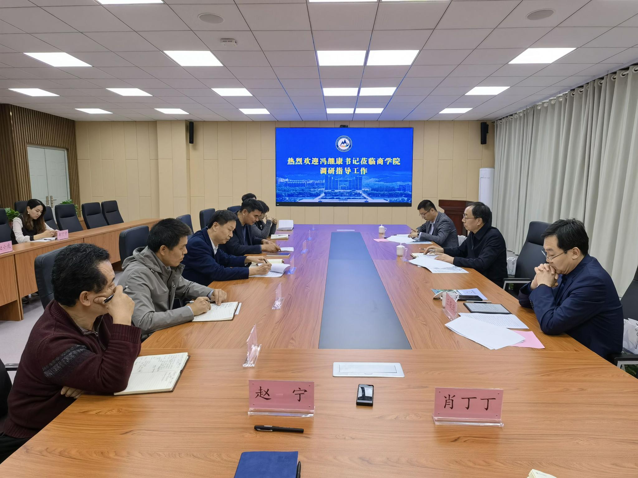 商学院院长夏同水介绍了商学院的基本情况,党委书记魏成武重点就党建工作做了汇报,其他班子成员分别就有关工作进行了汇报交流。