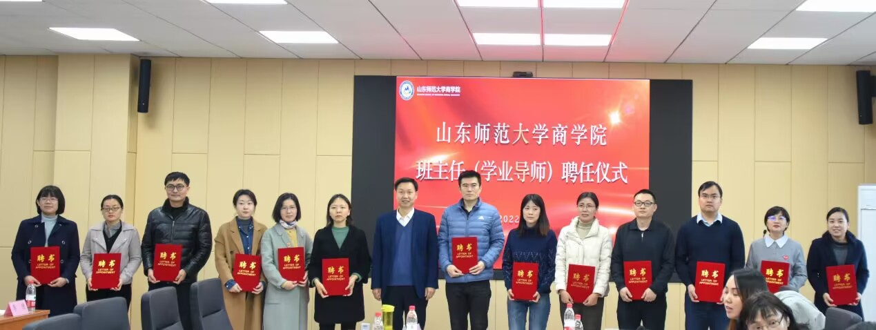 11月17日上午,商学院于长清湖校区文济楼549会议室举行学生班主任(学业导师)聘任仪式。院党委书记魏成武、副书记陈钊、副院长刘丽娜、团委书记郝宁宁,27位新聘班主任、辅导员及学生代表参加会议。