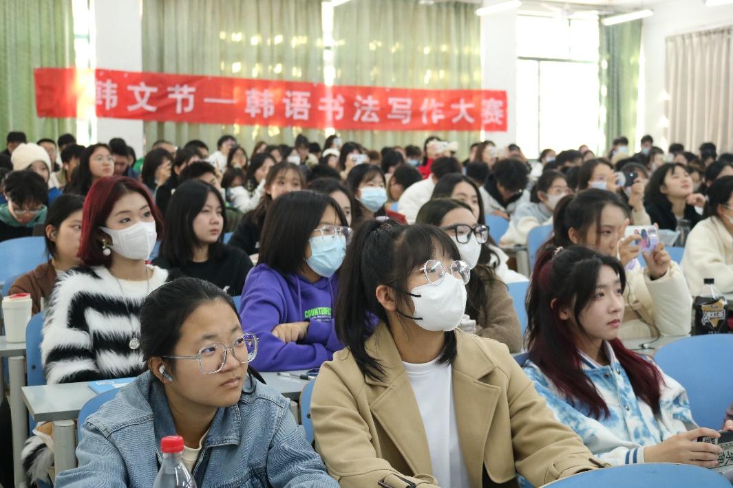 活动组织学生观看韩文介绍视频、韩国又石大学概况及跆拳道表演等,让同学们体会到韩文的魅力,感受到了浓厚的韩国文化韵味。商学院副院长刘钻扩表示,语言和文化活动相辅相成,鼓励学生们认真学习韩文,并对活动的圆满成功表达了祝愿。李斐斐老师根据自己与韩国同学的交往经历指出,韩国与中国服饰妆容以及吃穿用度等方面都有很大的差异,学习不同国家的文化会打开我们的视野,让我们能从其他优秀文化中获得人生体验,让自己的人生更加多彩。2019级张思琦与同学们分享自己四年来学习韩文总结的经验,为同学们介绍了韩语学习的态度及方法。活动最后,2021级、2022级学生分别参与了韩语写作、书法大赛,并进行了汇报演出。