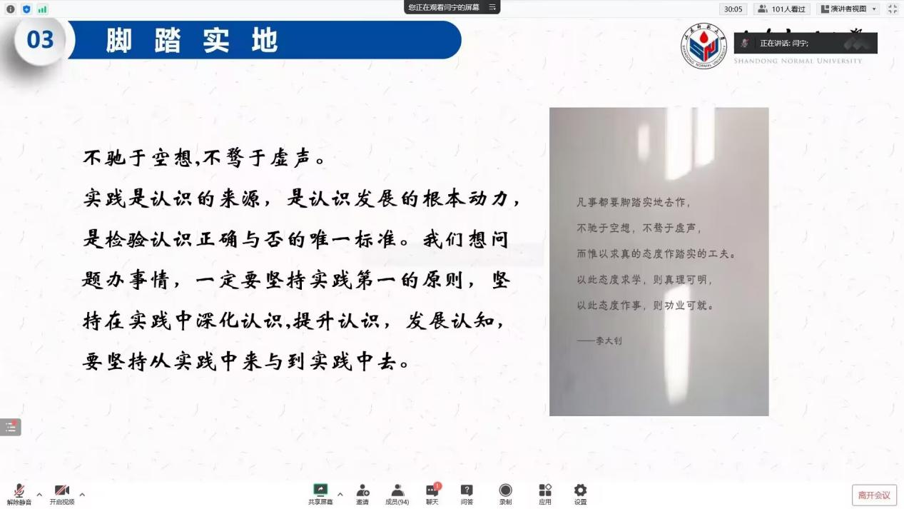 闫宁首先分享了自己的科研项目经历,向参会同学介绍了项目内容及项目成果。她表示,参加科研项目能充分锻炼同学们的自学能力、软件应用能力、团队协助能力等,让人受益匪浅。随后,闫宁传授了自己成功的经验,鼓励同学们学习多项技能,积蓄力量,并寻找到有责任心、有热情、有能力的合作伙伴,在比赛过程中达到事半功倍的效果。她强调,信息收集的能力十分重要,要善于利用知乎等平台学习相关优秀案例。
