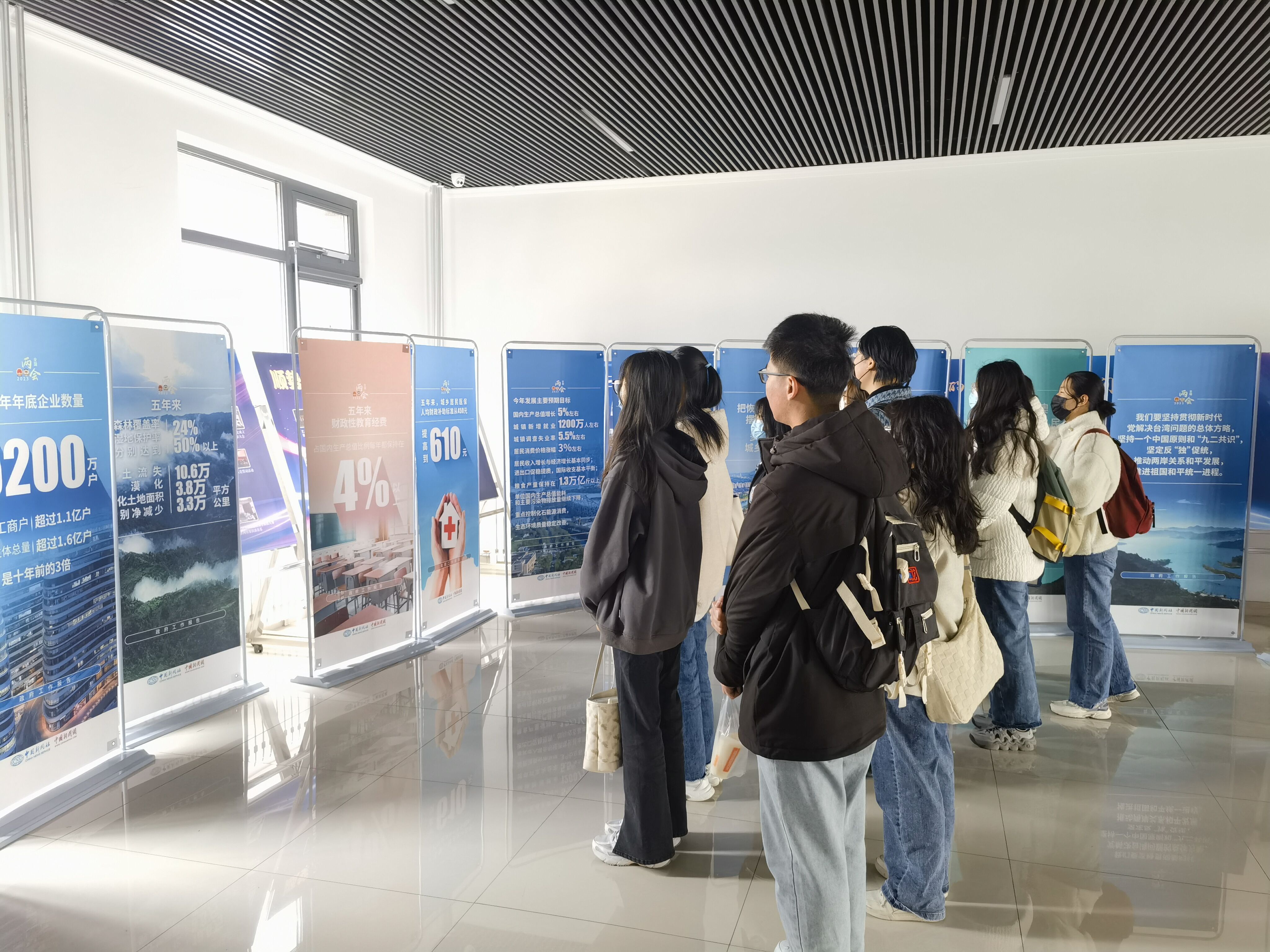 凝聚前进力量,吹响奋进号角。备受全国人民关注的2023全国两会在春意盎然的三月拉开帷幕,山东师范大学商学院师生高度关注全国两会盛况,通过网络、电视、“学习强国”等方式收看收听大会盛况和相关报道;举办全国两会精神图文展,以图文并茂的形式,详细介绍了近五年来国家经济发展情况、2023年工作中心以及预期发展目标。参观完图文展后,学生纷纷表示,将更加明确时代赋予的责任,今后要更加坚定信念,勇于担当,努力奋斗,以实际行动肩负起新时代使命。