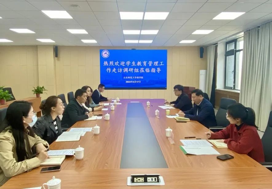 4月17日,山东师范大学学生工作部部长李鹏健一行走访调研商学院学生教育管理工作。商学院党委副书记陈钊,学工办主任、团委书记郝宁宁及部分辅导员参会。