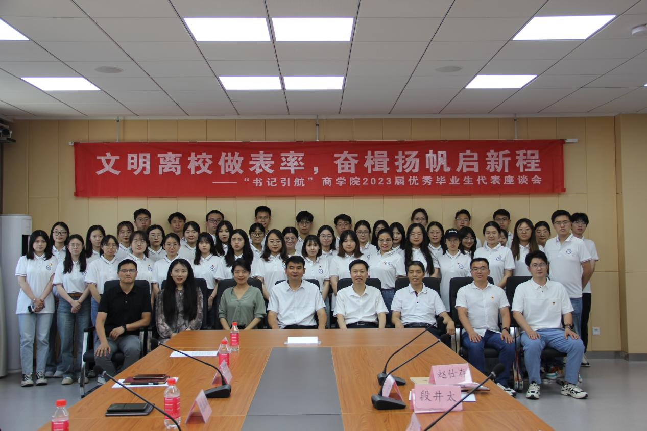 为进一步做好2023届毕业生管理工作,引导毕业生以饱满的热情走向新的学习和工作岗位,6月8日下午,商学院于长清湖校区文济楼549会议室召开“文明离校做表率,奋楫扬帆启新程”——“书记引航”2023届优秀毕业生代表座谈会。学院党委书记魏成武、院长夏同水、党委副书记陈钊出席会议,毕业班辅导员以及2023届优秀毕业生代表40余人参与座谈。