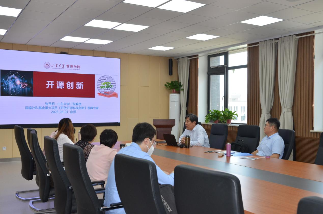 6月3日,商学院于长清湖校区文济楼549教室成功举办学术报告。本次论坛的主讲嘉宾是山东大学二级教授、国家社科基金重大项目《开放开源科技创新》首席专家张玉明,以 “开源创新” 为研究主题进行了精彩的学术演讲。