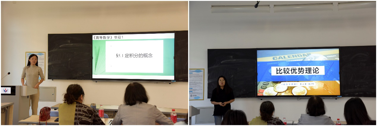 青教赛选拔赛环节中,张宁宁、王洪美两位教师分别对《经济学》和《高等数学》课程的教学片段进行了课堂展示,融合以问题为导向的教学法、案例导入法、情景模拟法等各种教学方法和技能,教学内容充实,重点突出,情绪饱满,表述清晰,富有逻辑性,充分展示了我院青年教师的风采。