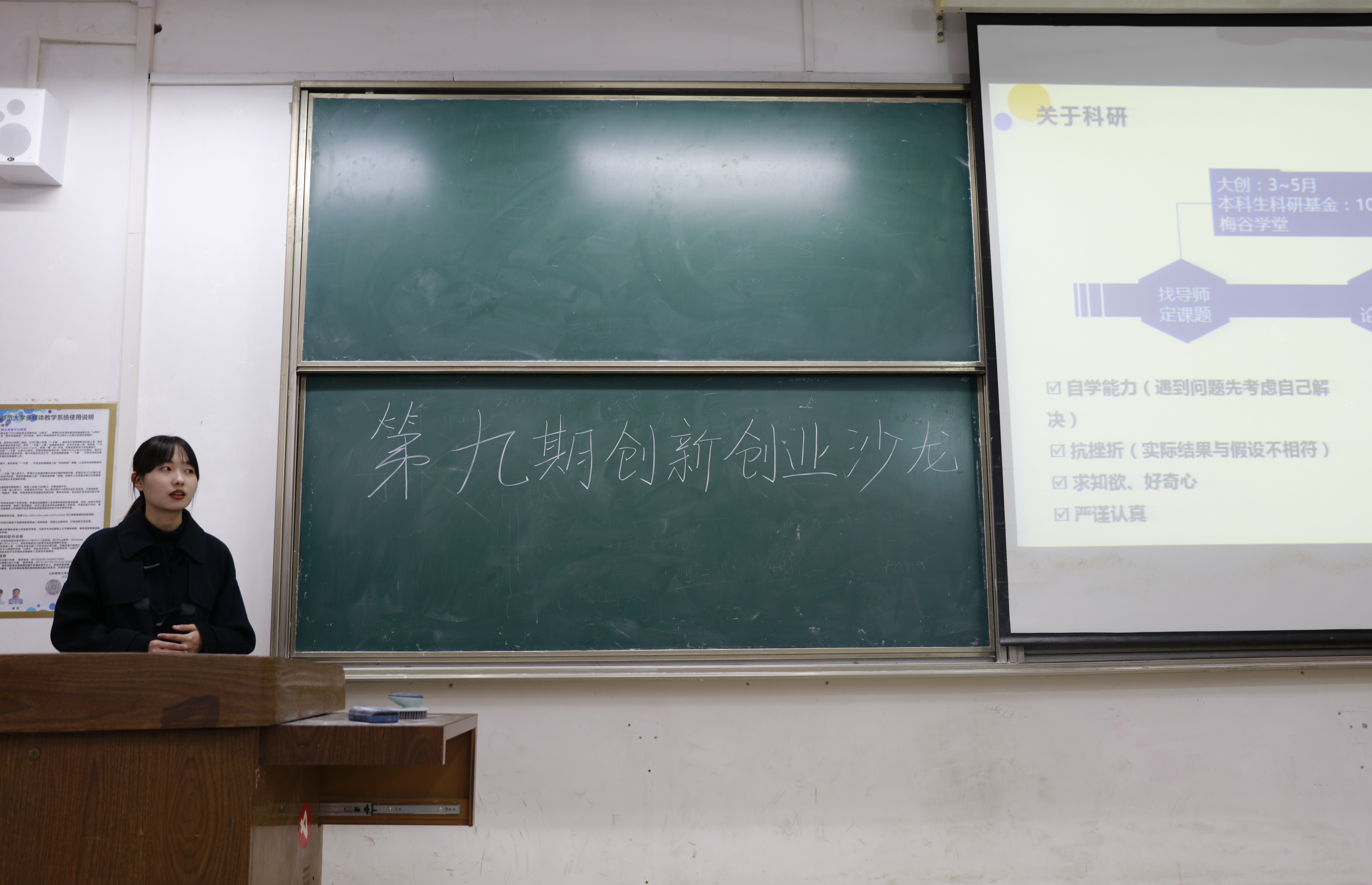 为引导学生积极参与创新创业大赛,激发同学们职业规划的能动性,12月7日,商学院学生会青年发展部于文渊楼C区127室举办第九期创新创业沙龙活动。由曾参与国家级大创项目、以第一作者身份发表两篇国家级期刊论文、投稿一篇CSSCI期刊论文且已进入终审阶段、现已推免至中国海洋大学的张璐及“互联网+”创新创业大赛一项省级银奖和一项省级铜奖、Mathor Cup数学建模国家级三等奖获得者、现已推免至山东大学的冯爱静担任主讲人,商学院百余名学生积极参会。