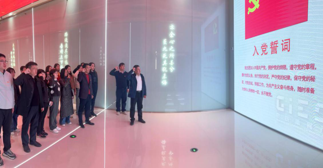 在宣誓厅,全体同志面向党旗庄严宣誓,重温入党誓词,感悟初心使命。