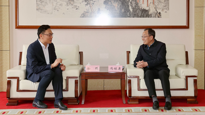 冯继康对徐群的到来表示热烈欢迎,对校友长期以来给予学校的关心表示感谢。他指出,校友资源是学校得天独厚的优势,学校的发展离不开校友的支持,希望徐群秘书长充分发挥自身资源和优势,助力母校及新结构产业发展研究院加快创新发展。徐群深情回忆了在母校学习期间的美好时光,介绍了广东省院士联合会及自己的工作情况,希望今后有机会与母校相关专业开展合作,助力新结构产业研究院发展,并欢迎母校领导老师去广东考察交流。