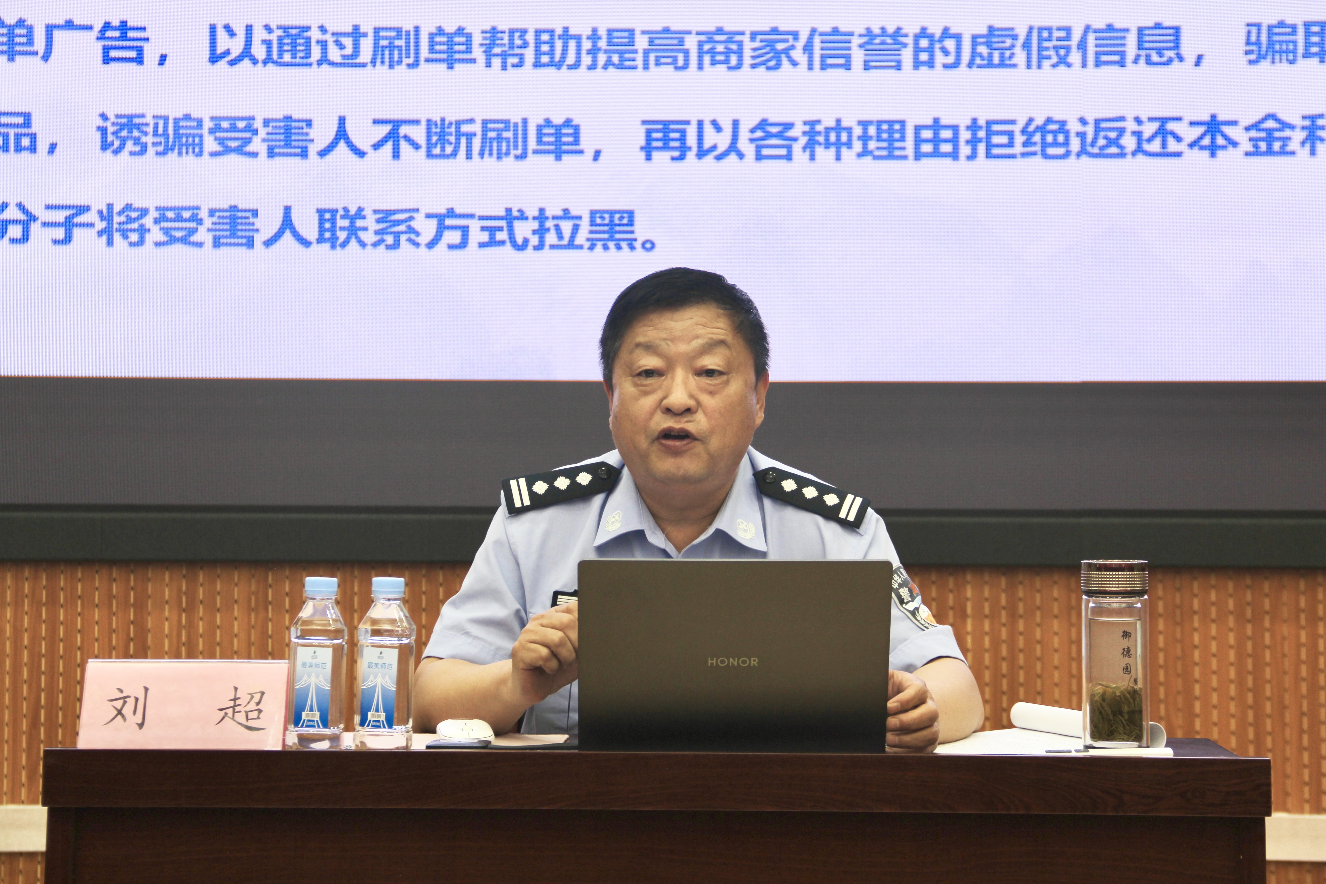 为加强学生自我防范和反诈意识,创建平安校园,5月16日下午,商学院于126报告厅举办“警校携手,共创平安校园”防诈骗专题讲座。本次讲座邀请到济南市长清公安分局驻山师高级警长刘超担任主讲人,由辅导员周晓雨主持, 2023级全体学生到场聆听。