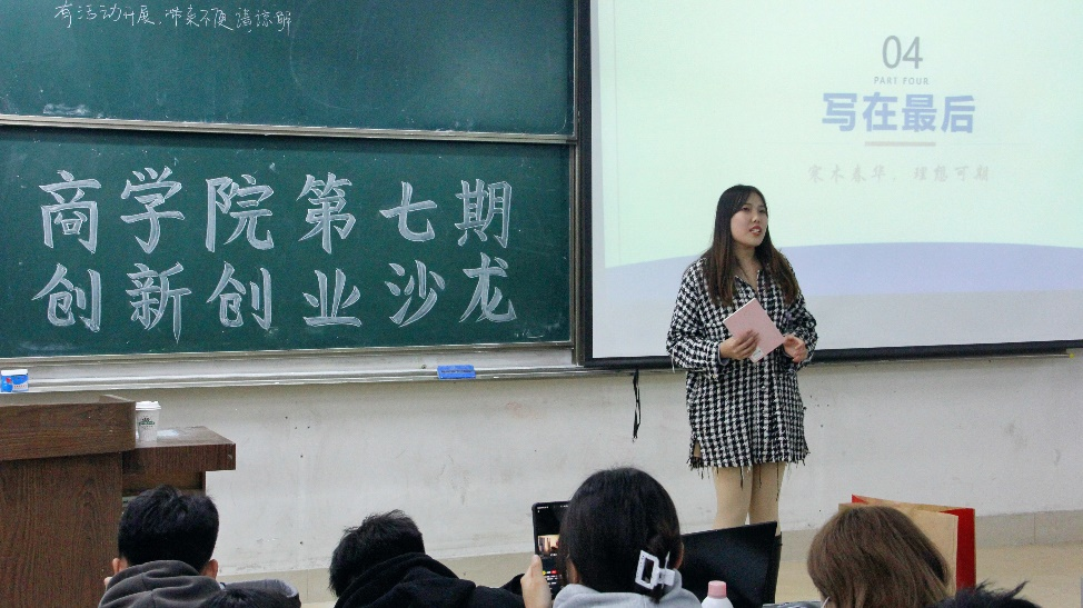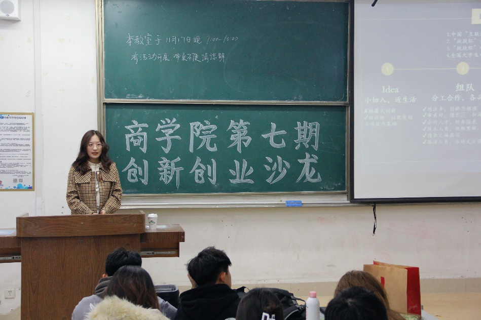 为引导商学院学生积极参与创业创新大赛,深入了解大赛的具体流程。11月17日,商学院于文渊楼C区121教室举办第七期创业创新沙龙活动,由全国商业精英挑战赛品牌策划竞赛国家一等奖、全国大学生市场调查与分析大赛国家三等奖的获得者武飞扬、全国高校商业精英挑战赛品牌策划竞赛二等奖、全国供应链大赛二等奖、全国大学生英语竞赛三等奖获得者刘心缘主讲,商学院学生共一百余人积极参会。