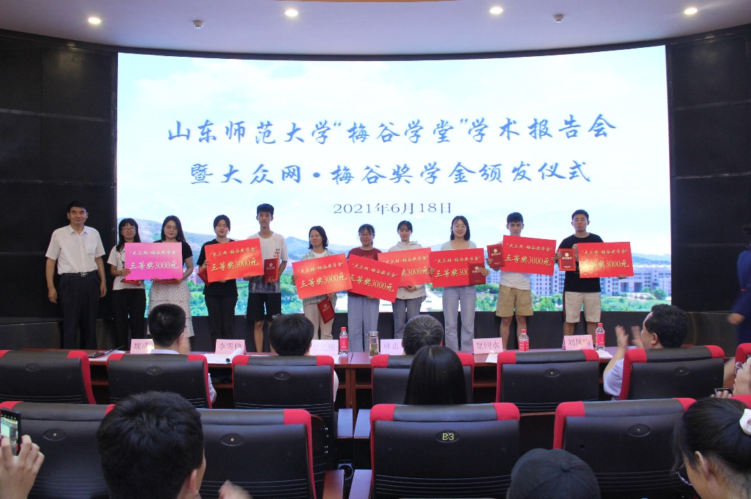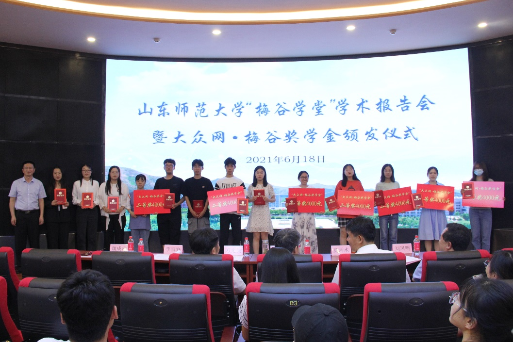 “大众·梅谷奖学金”简介:2020年由山东省互联网传媒集团资助设立,用于支持山东师范大学梅谷学堂建设,奖励梅谷学堂中品学兼优、成绩突出的优秀学员。